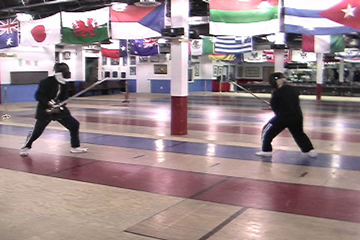 utilizes double-time attack and defense, and thus you may see sport fencers fight